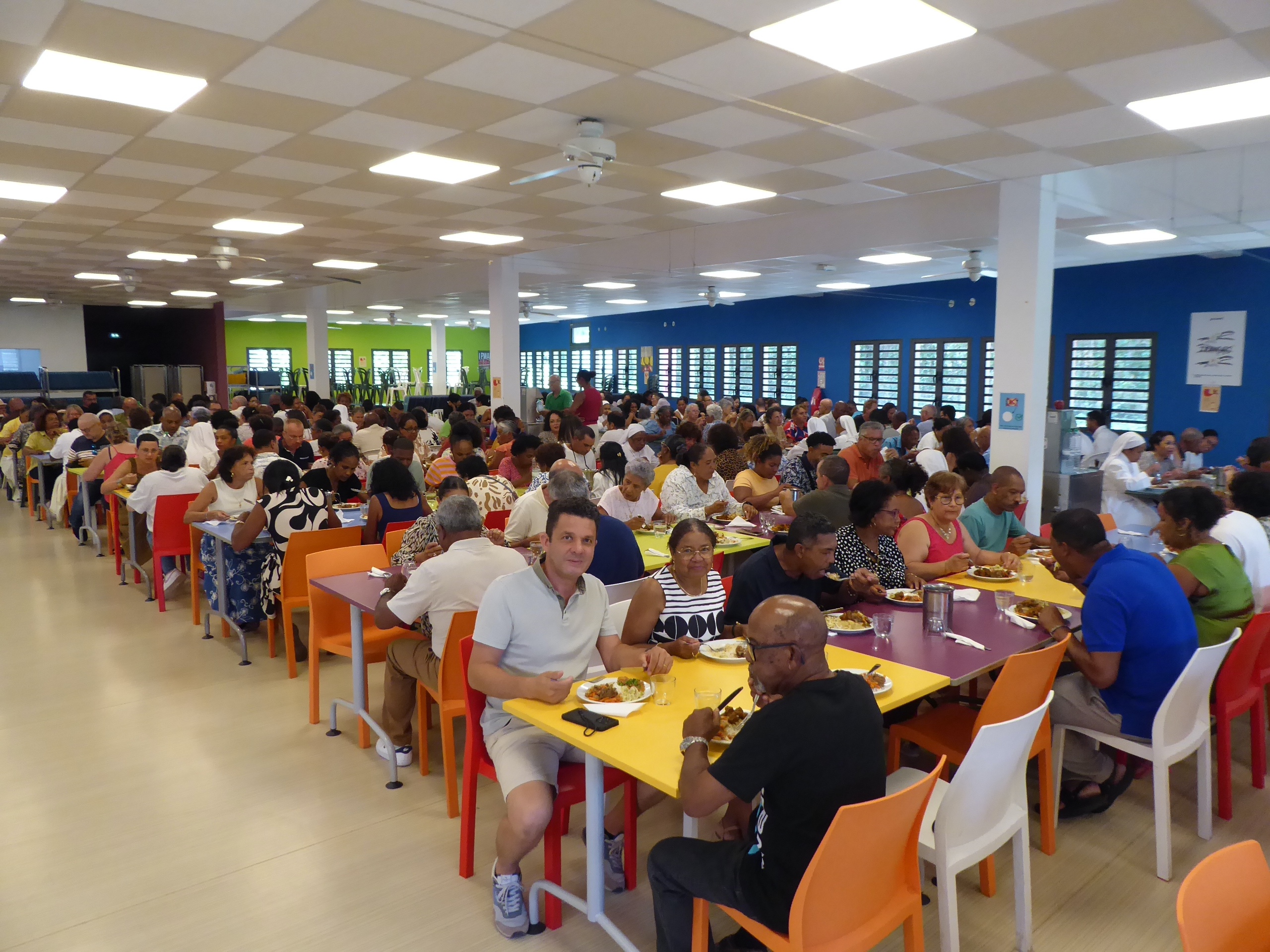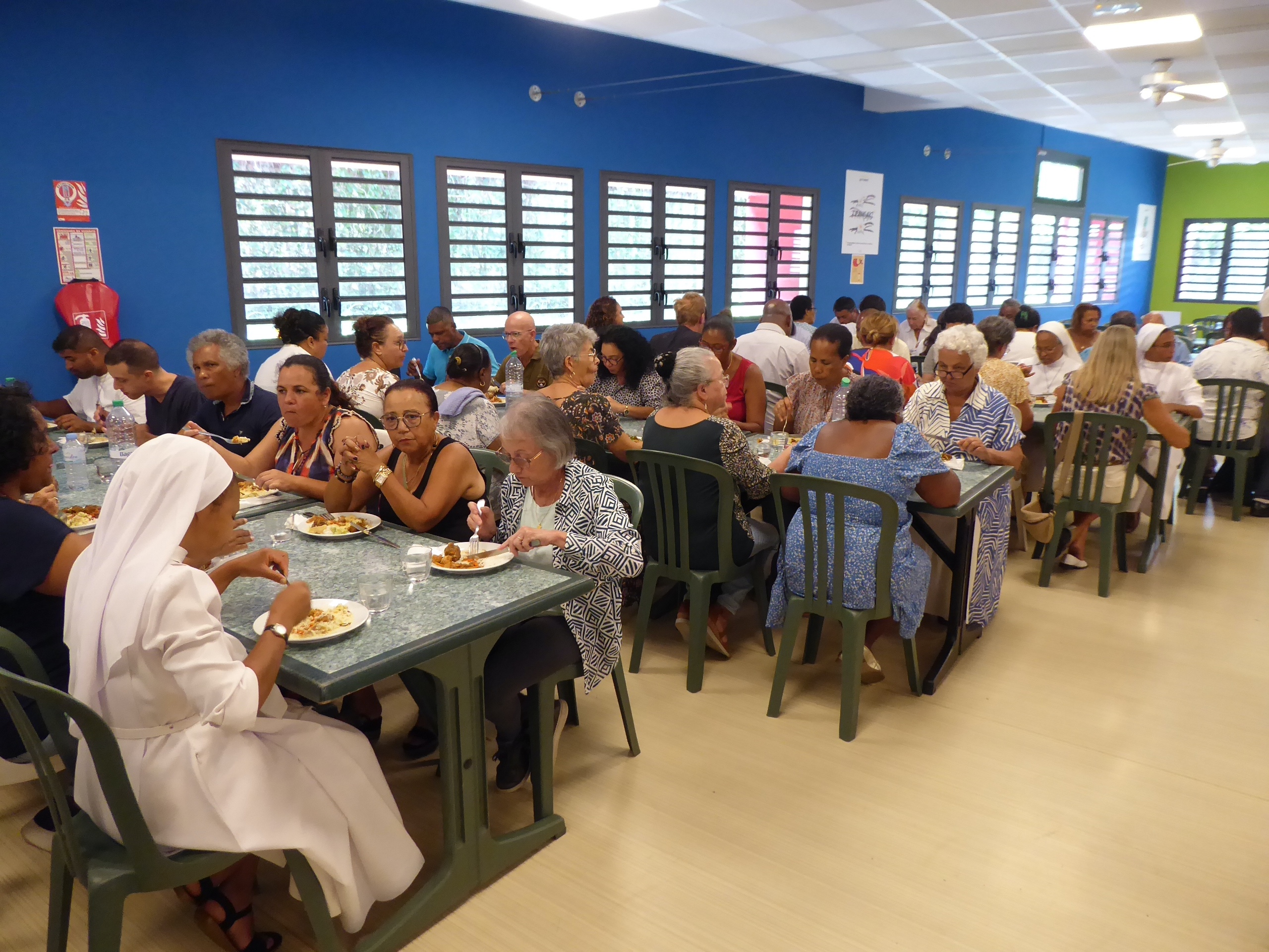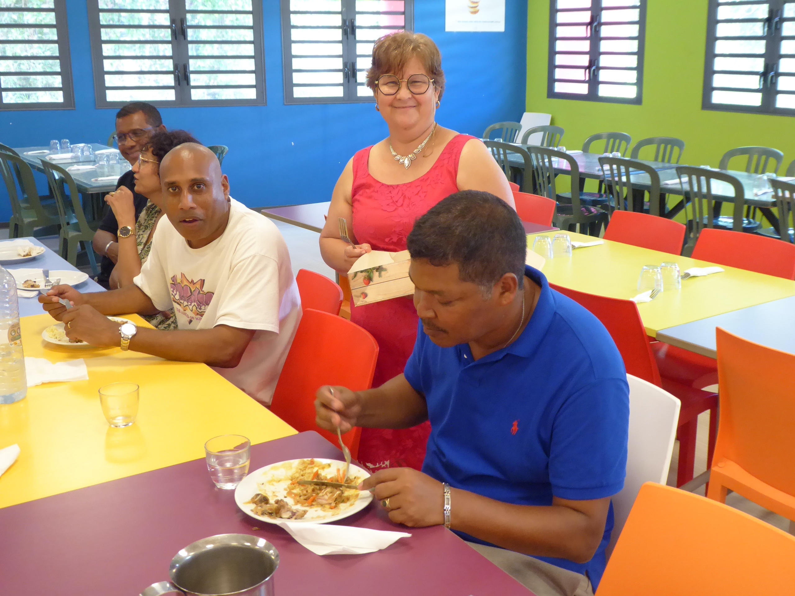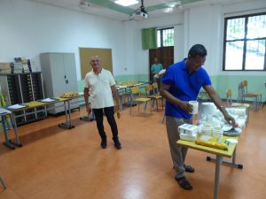A midi, nous nous sommes tous retrouvés au réfectoire pour partager un bon repas préparé par Didier et son équipe…