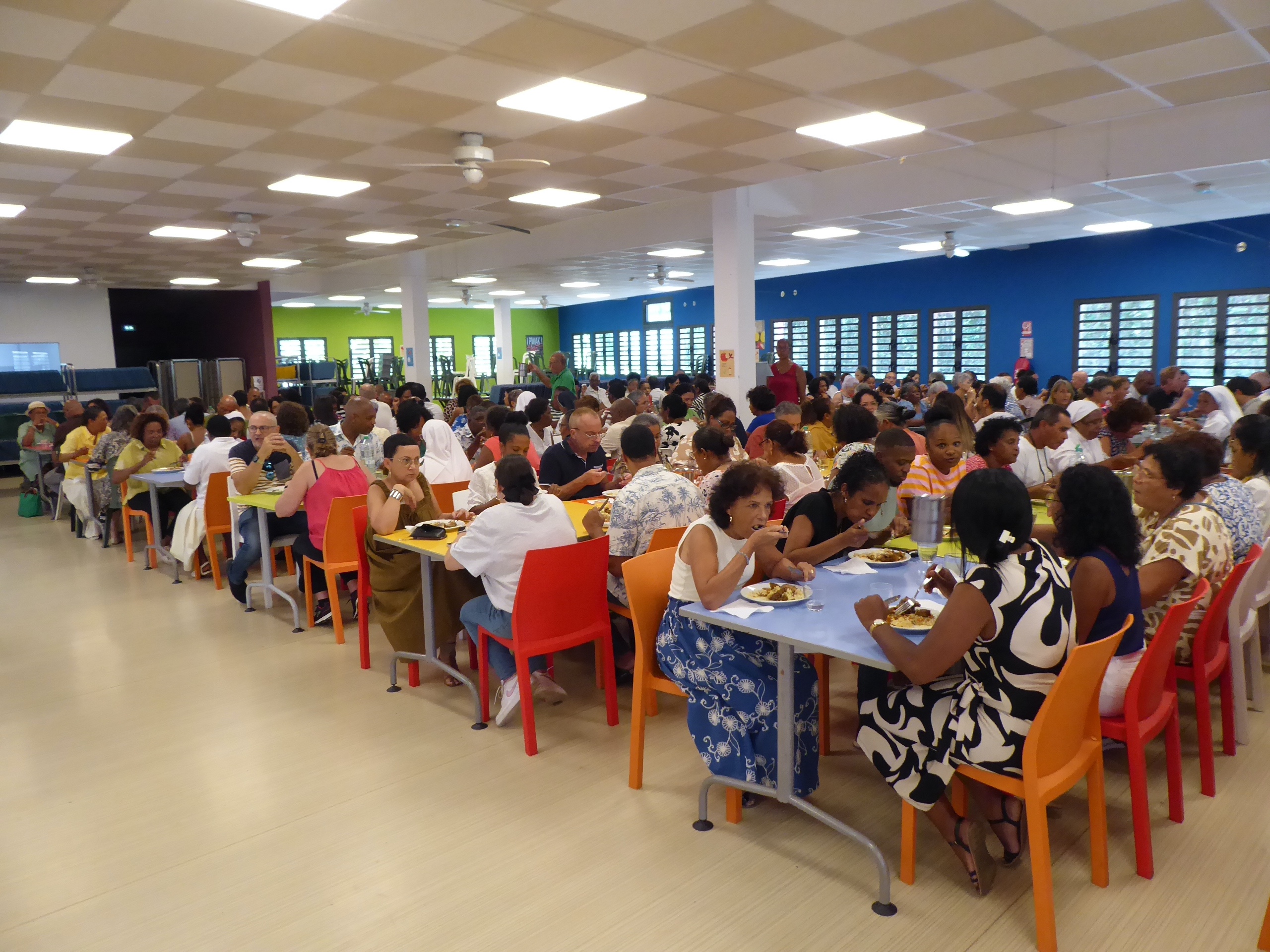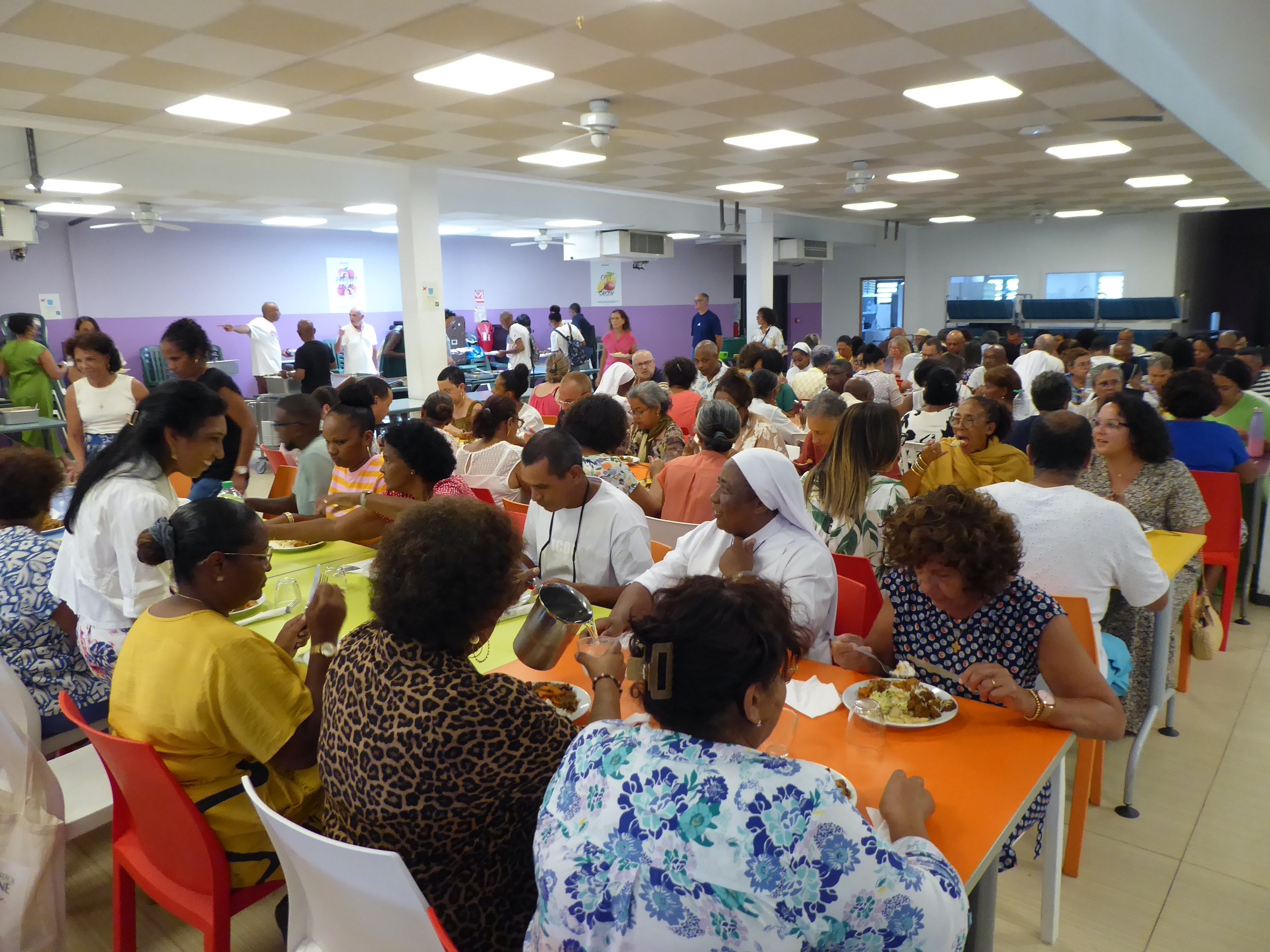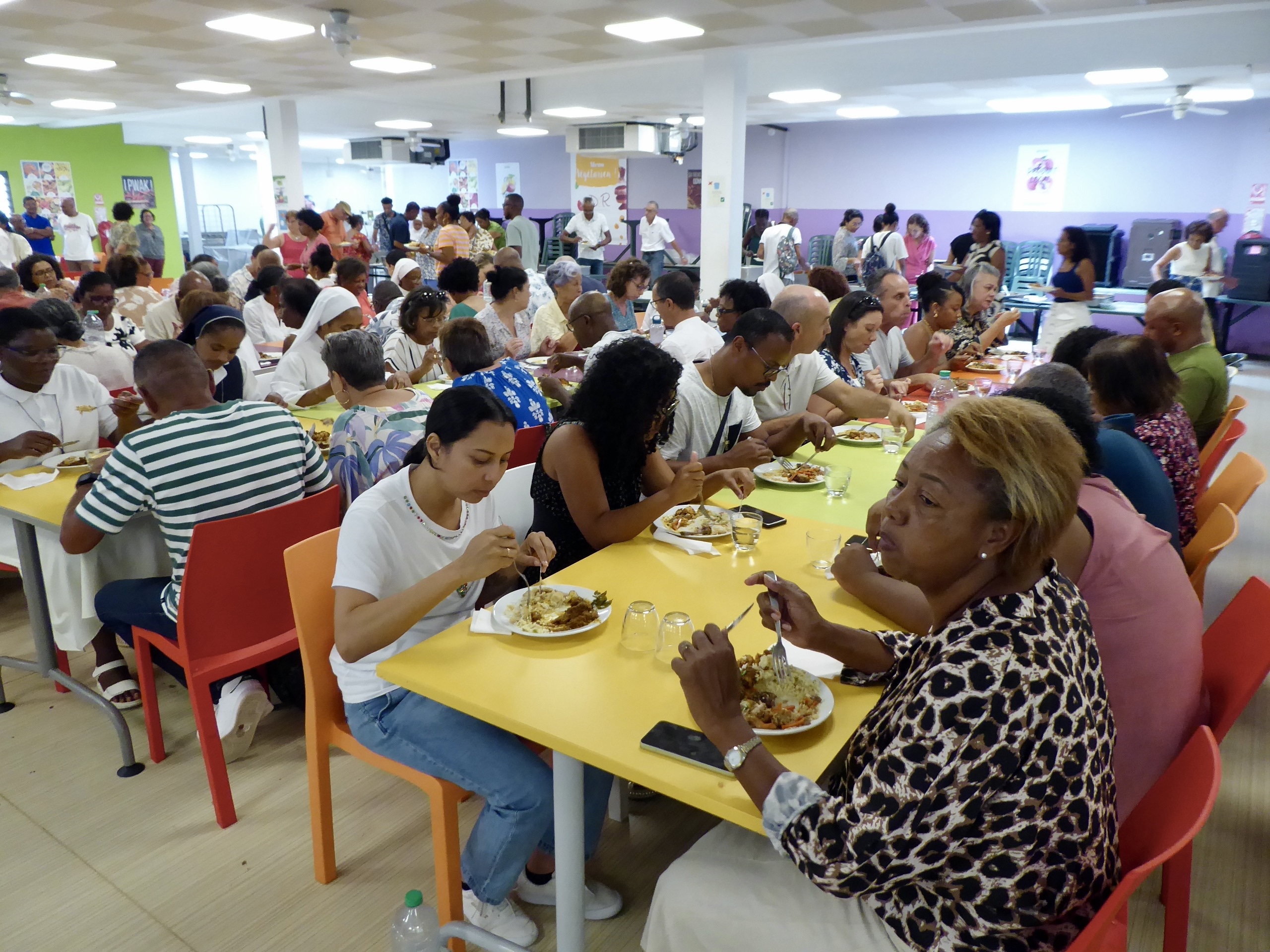 A midi, nous nous sommes tous retrouvés au réfectoire pour partager un bon repas préparé par Didier et son équipe…