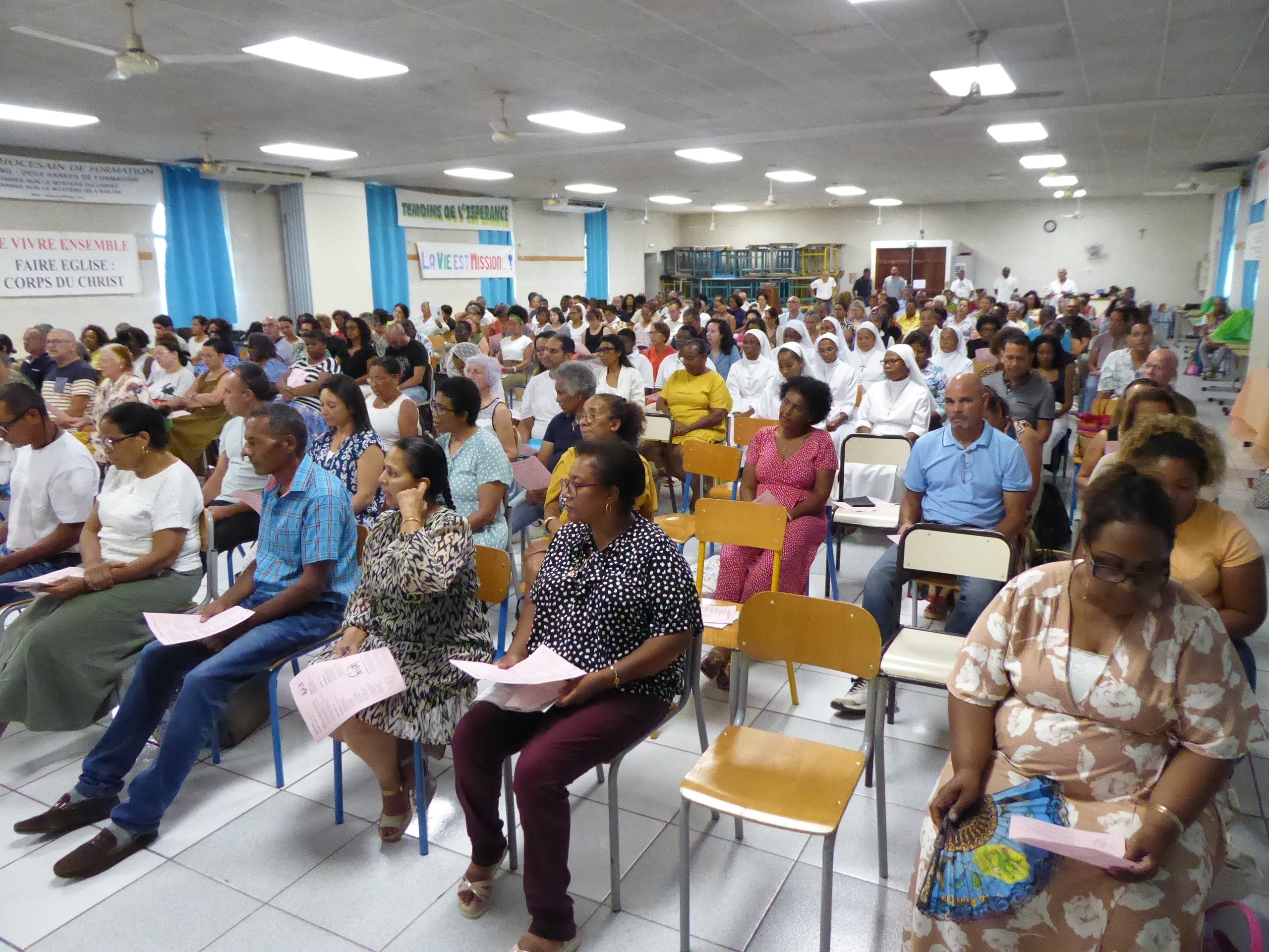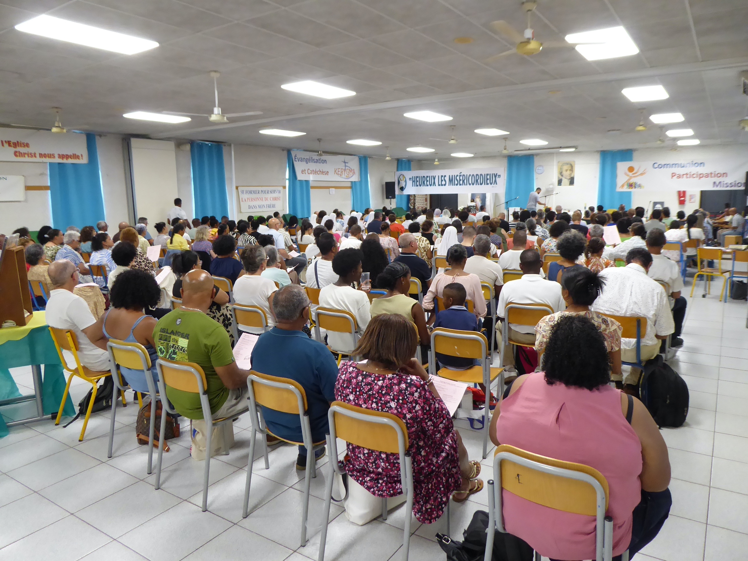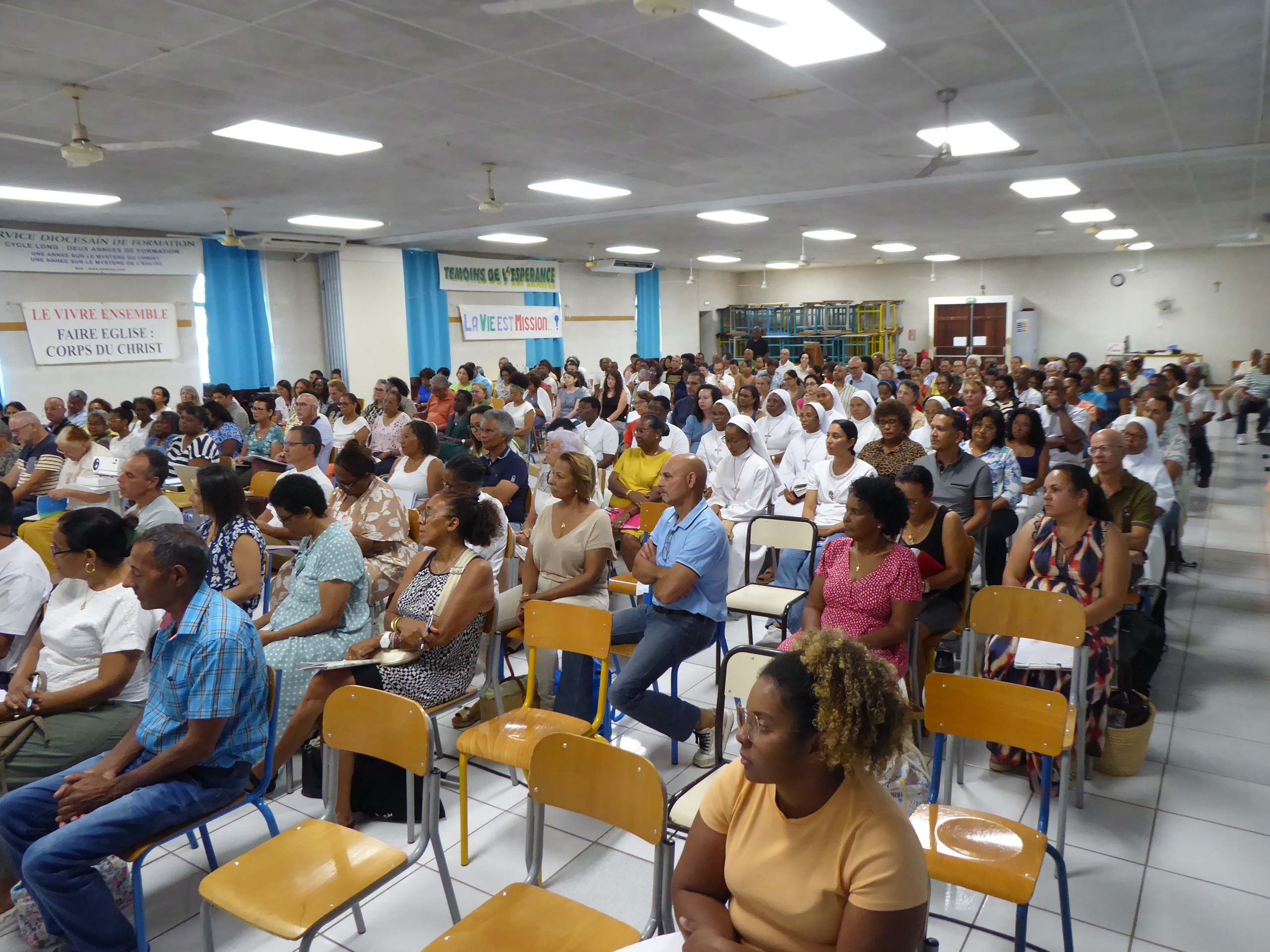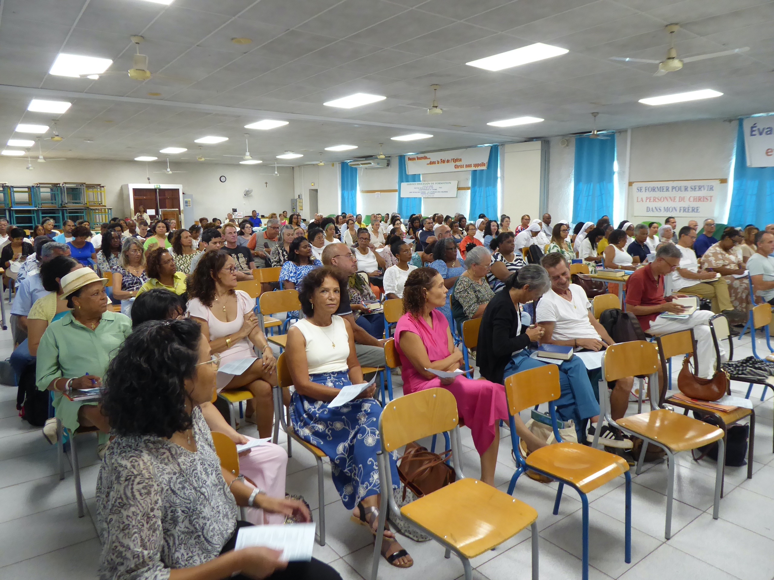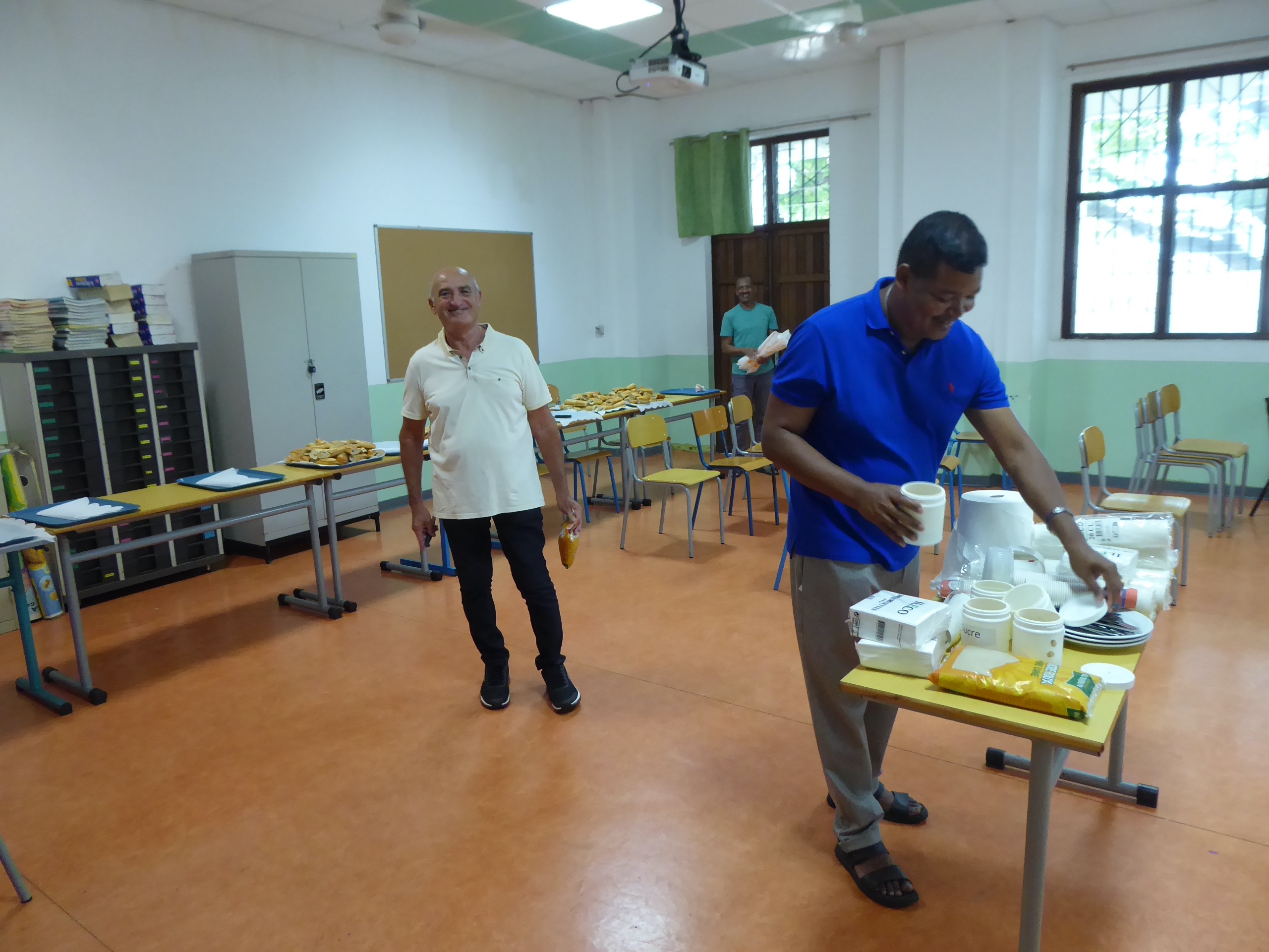 La veille, celles et ceux qui le pouvaient se sont retrouvés de bon matin à la Maison Diocésaine pour charger le matériel et nous sommes ensuite partis préparer le Collège St Michel…