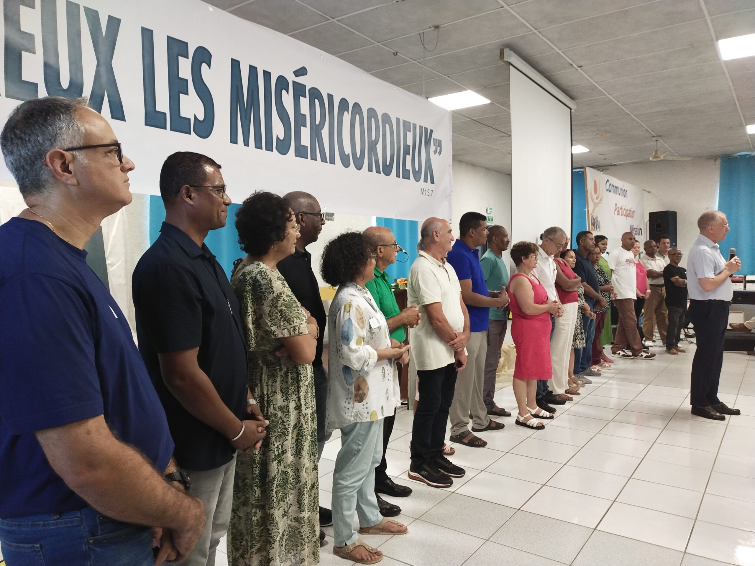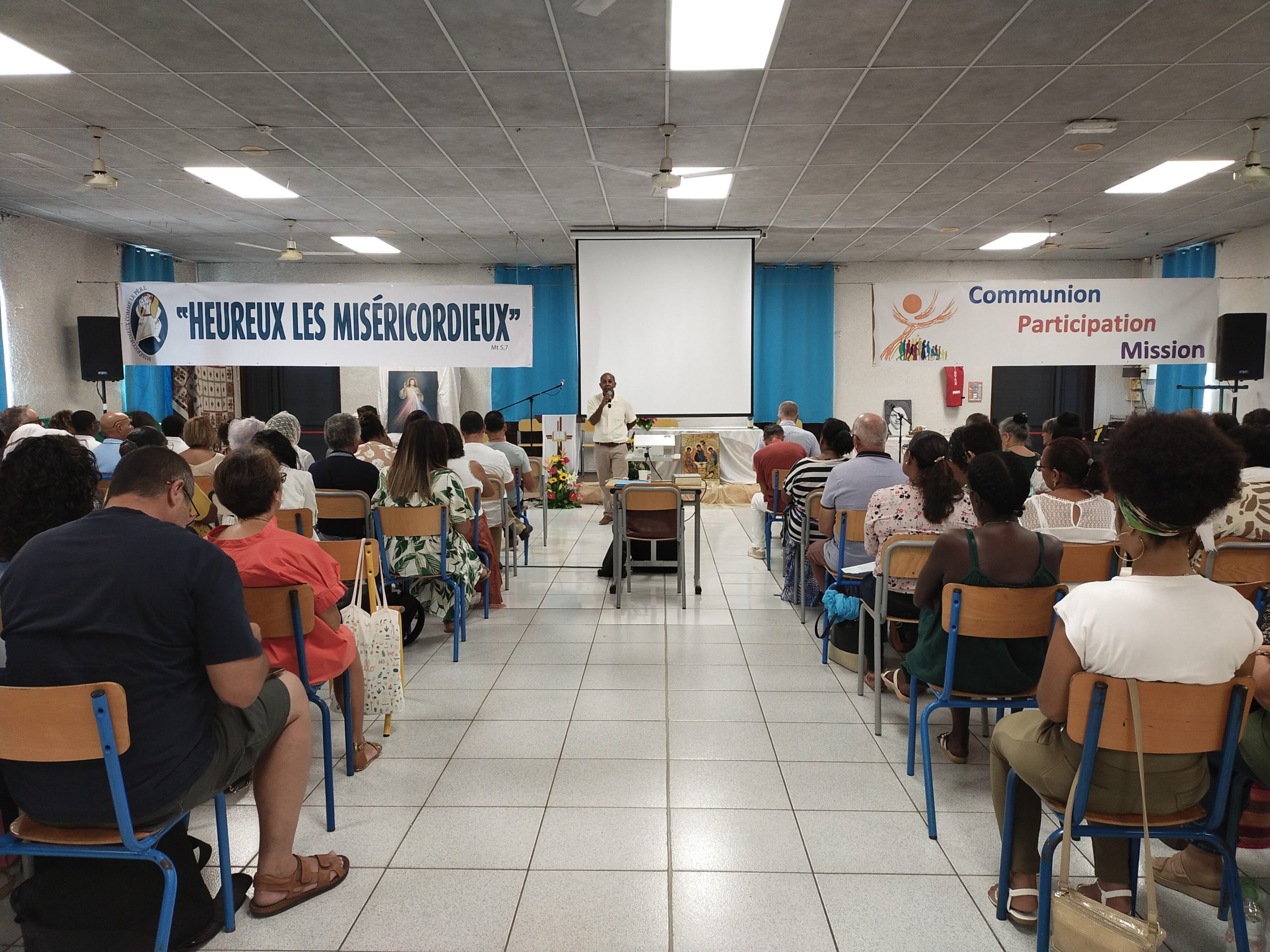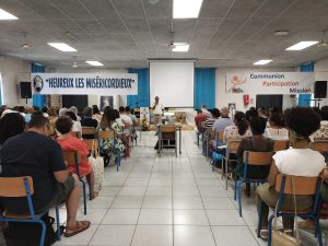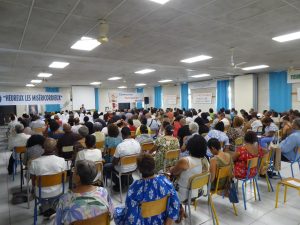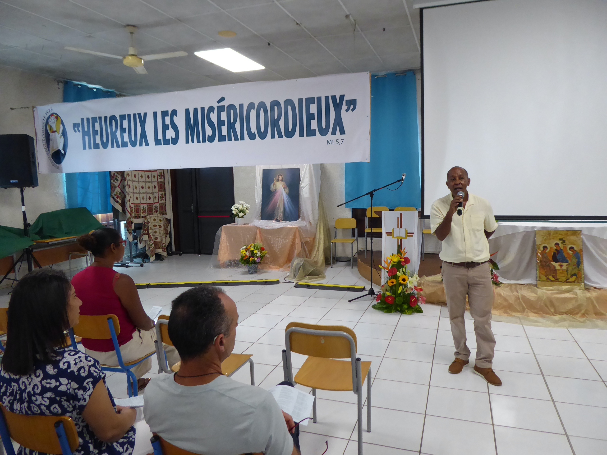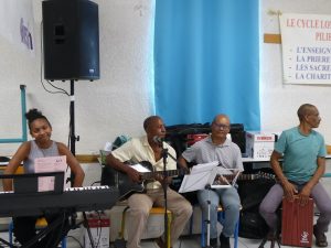 Puis, à 8h 00, Gaëlle et Emmanuel avaient déjà bien réglé la sono qu’ils avaient installée la veille, et Yolain Itema a rapidement présenté « la Liturgie des Heures » et la prière des Laudes avec laquelle nous allions commencer notre journée…