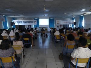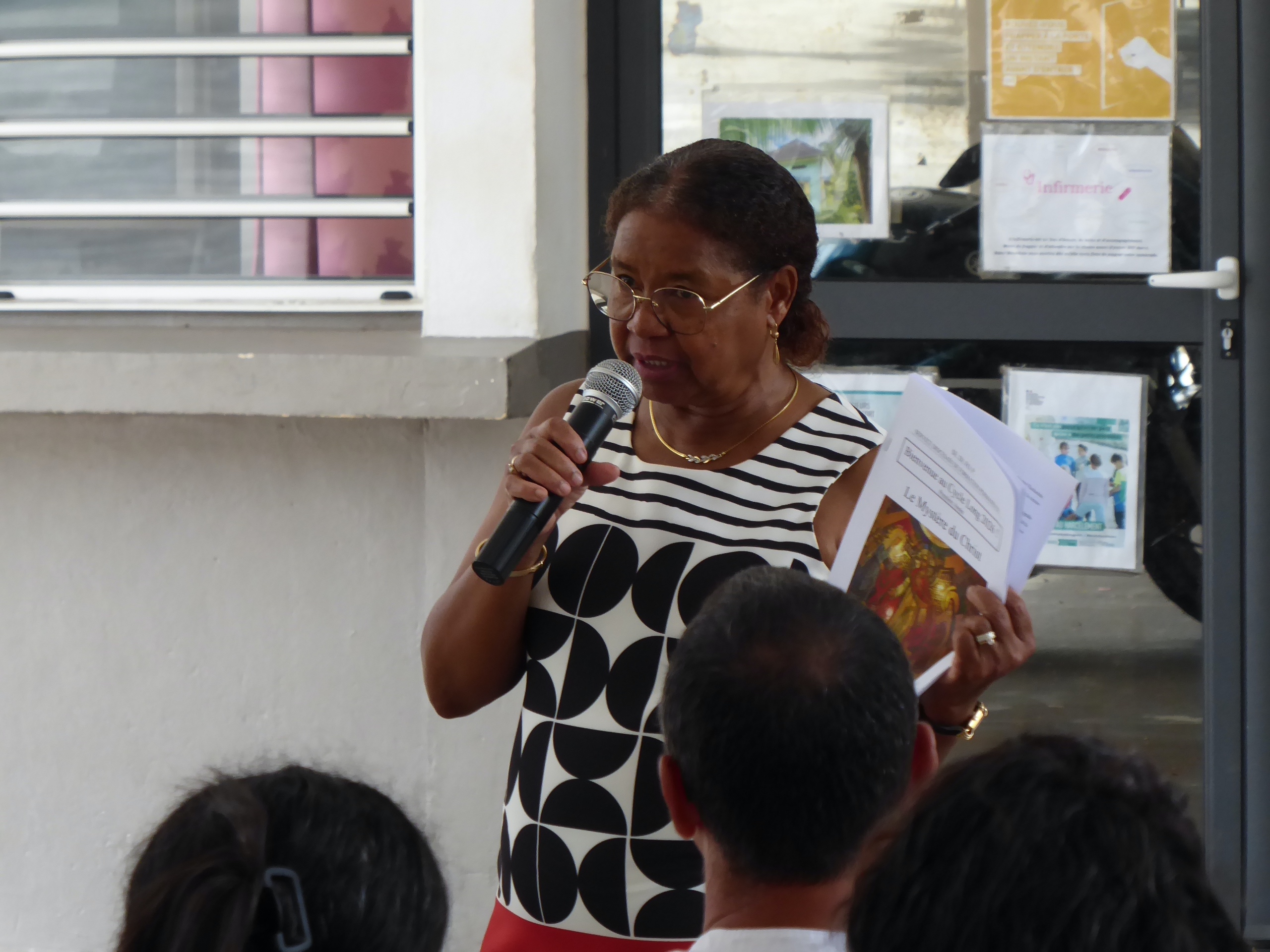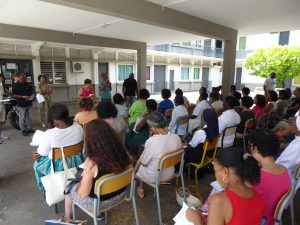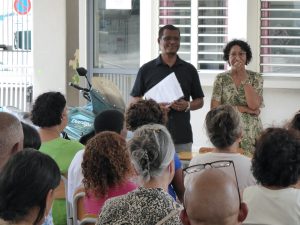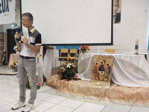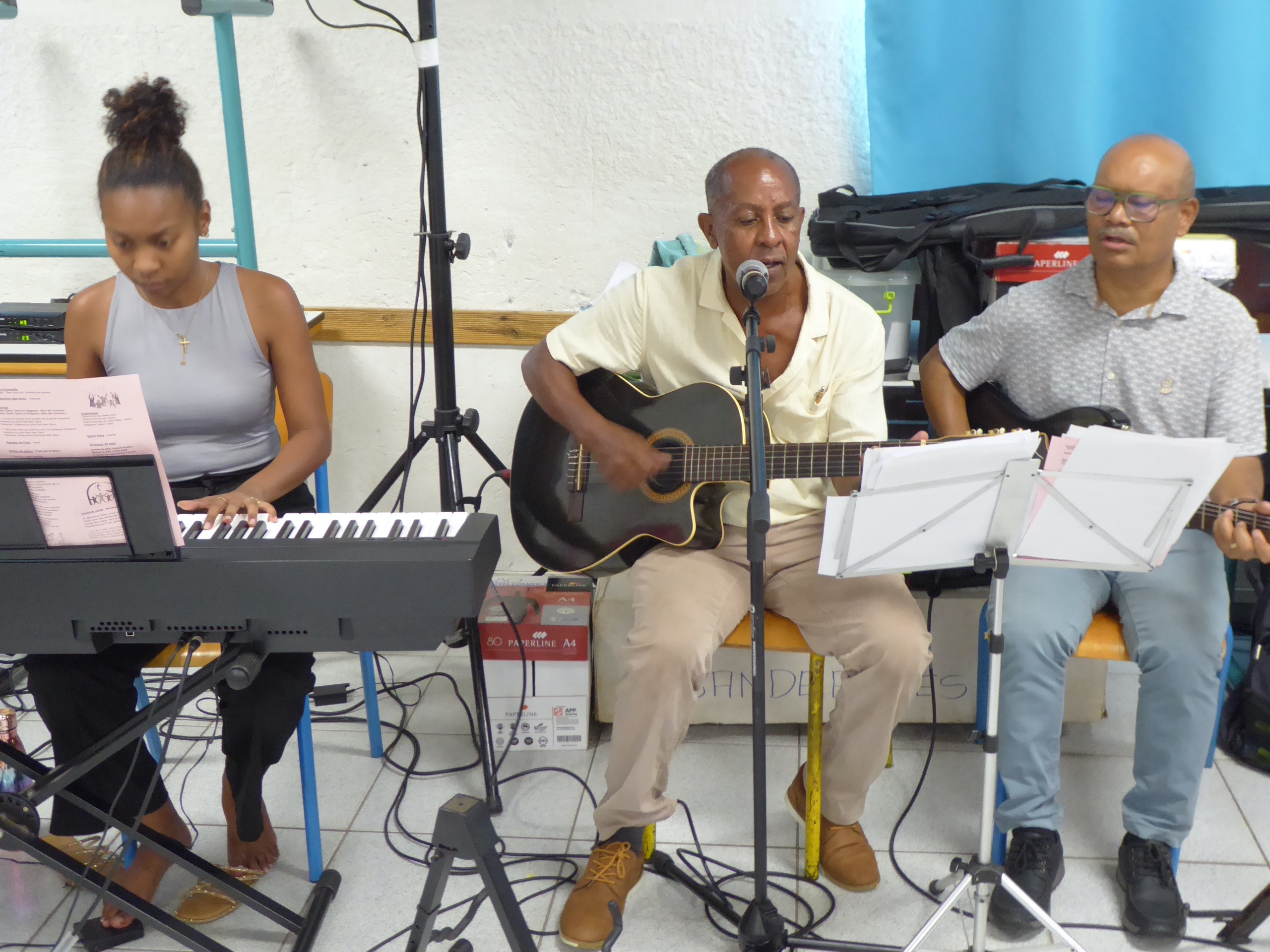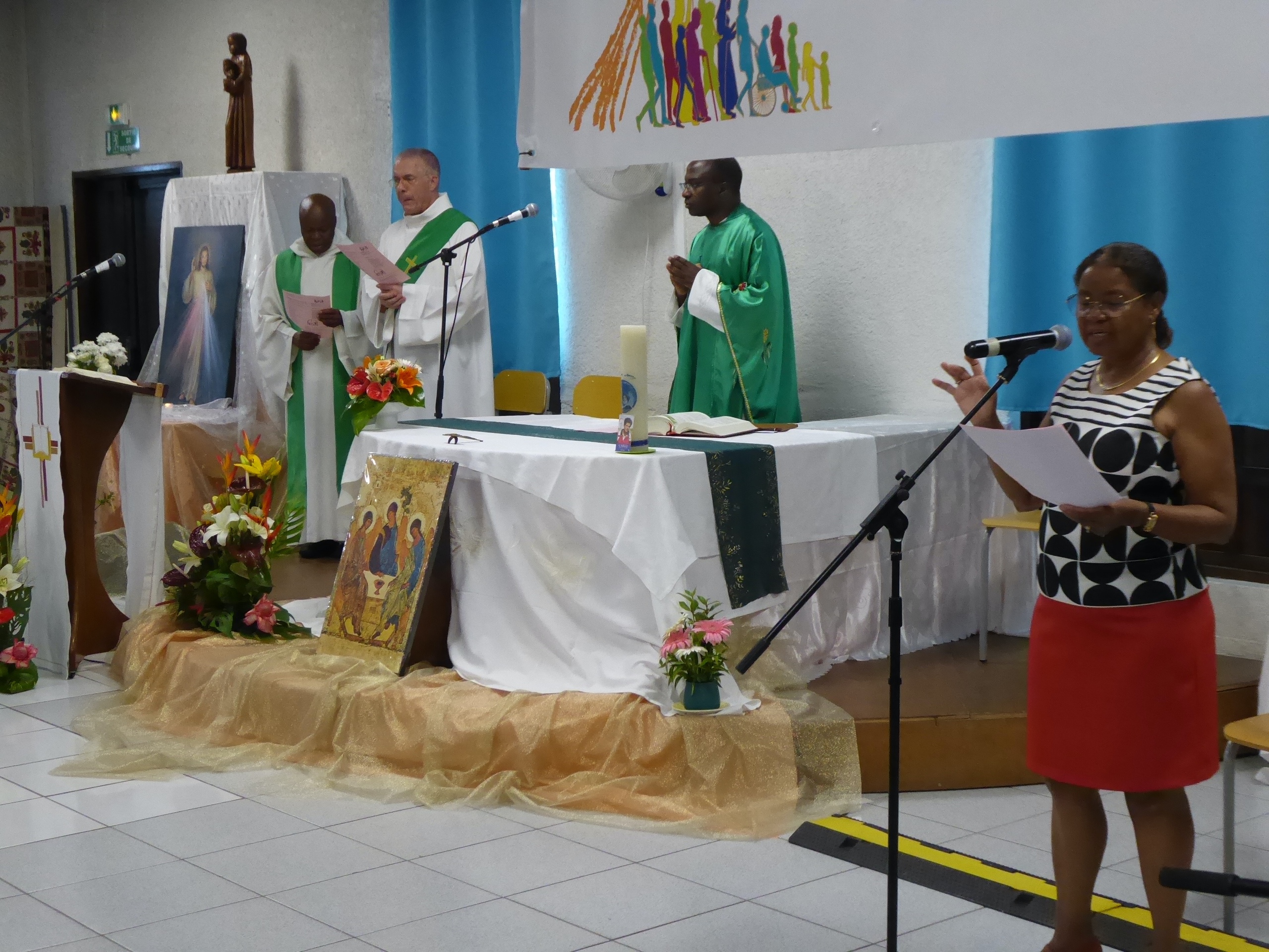 Puis, à 8h 00, Gaëlle et Emmanuel avaient déjà bien réglé la sono qu’ils avaient installée la veille, et Yolain Itema a rapidement présenté « la Liturgie des Heures » et la prière des Laudes avec laquelle nous allions commencer notre journée…