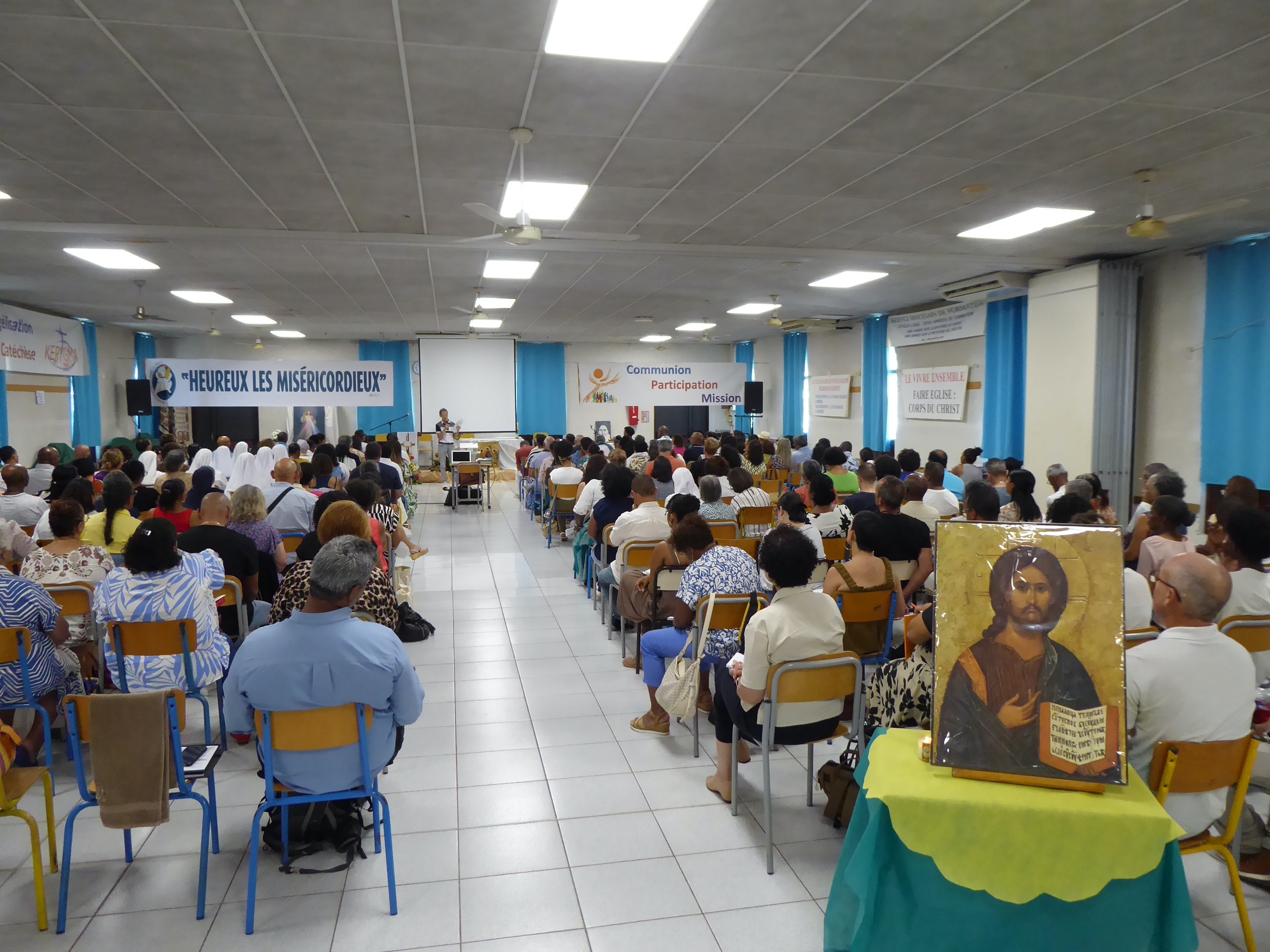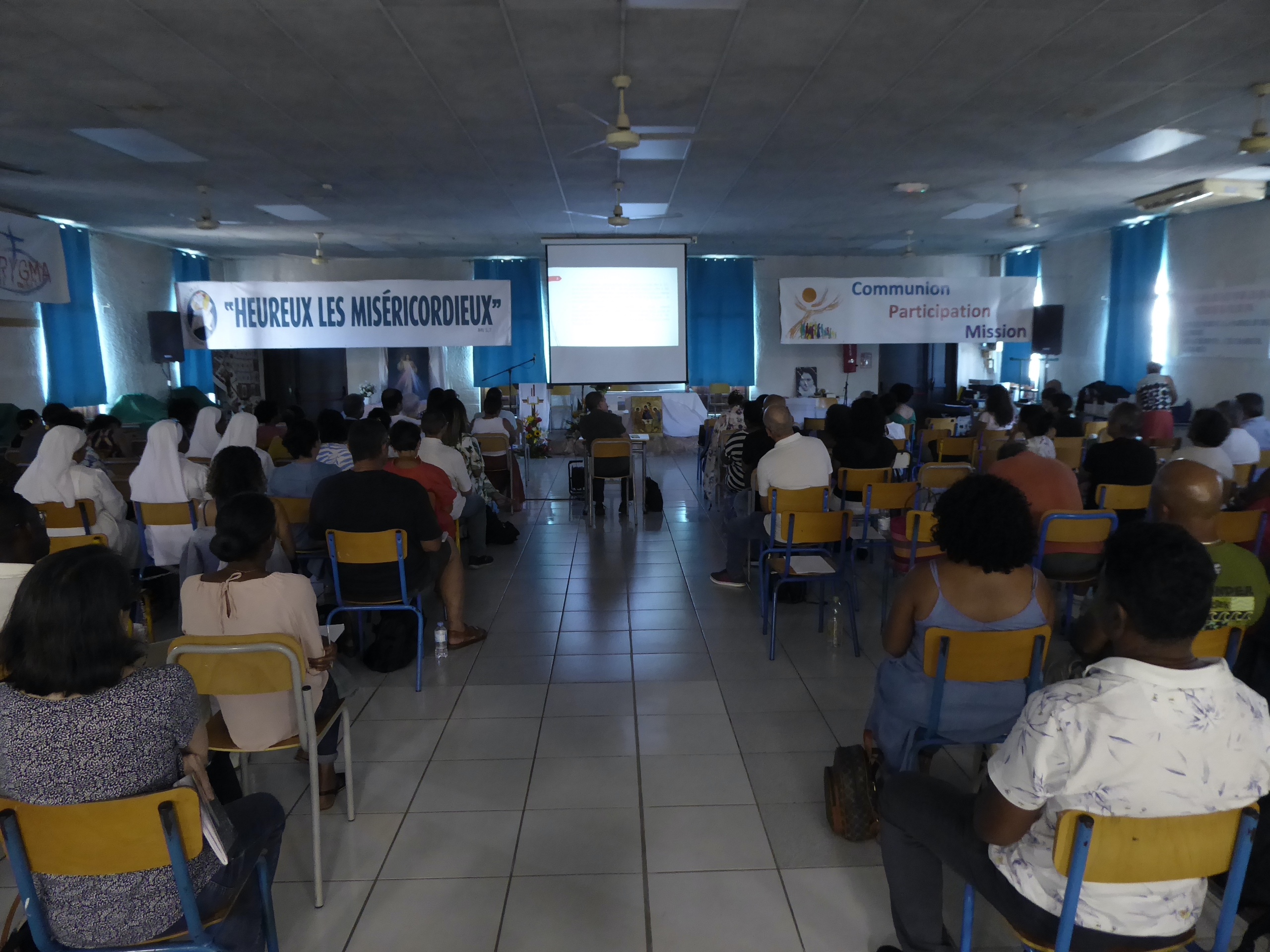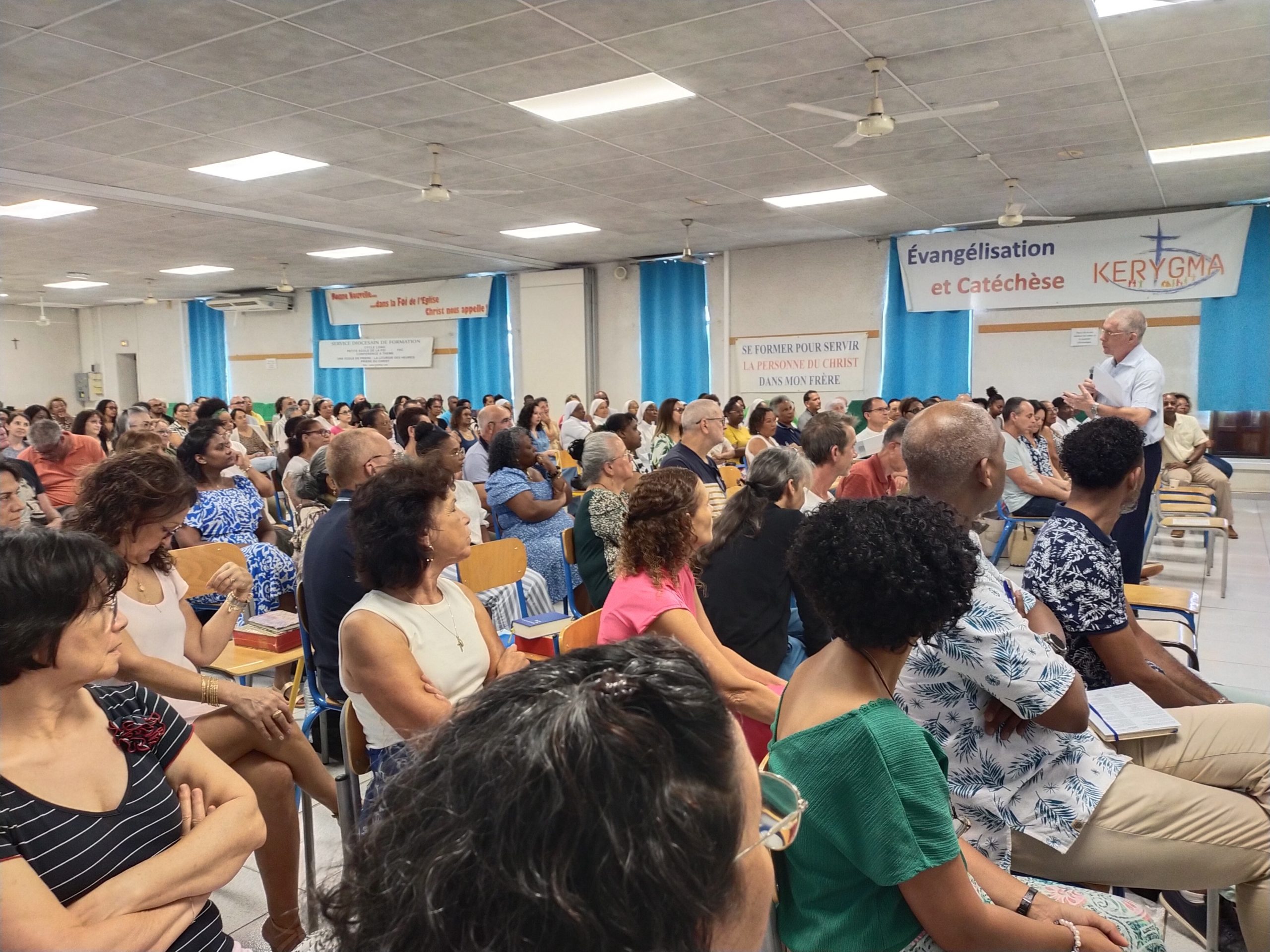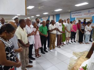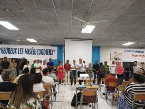 Puis, D. Jacques Fournier et Claude Won Fah Hin ont présenté le parcours de l’année centrée sur le Mystère du Christ, les cinq premières journées étant consacrées à l’étude biblique, les quatre suivantes aux grands textes de la tradition catholique (Concile Vatican II, Catéchisme de l’Eglise Catholique promulgué par St Jean Paul II, etc…).