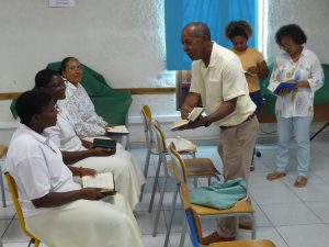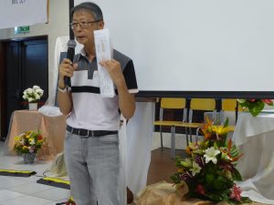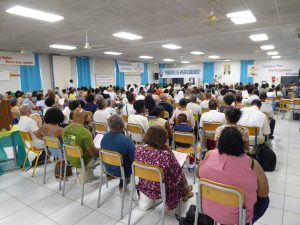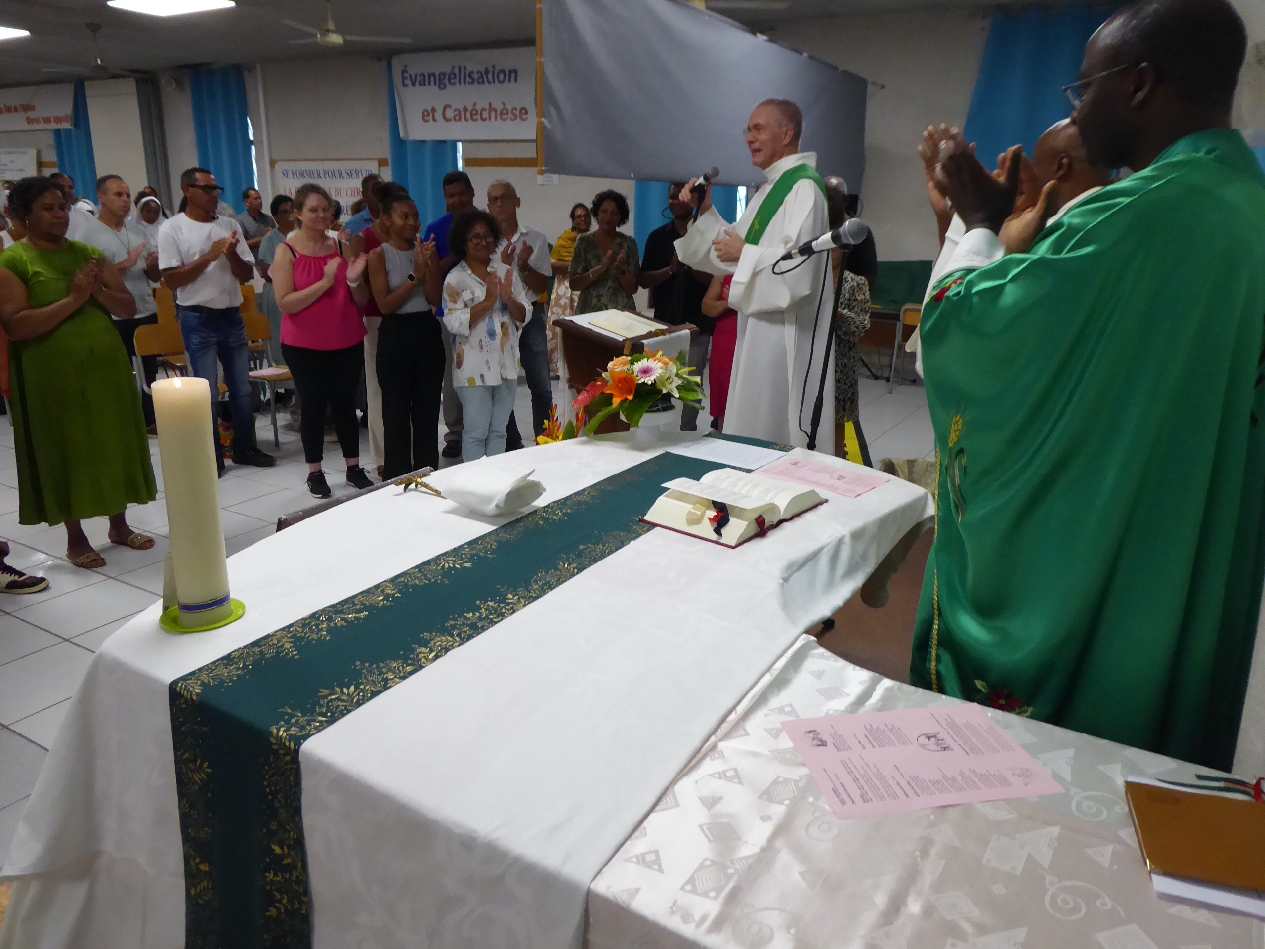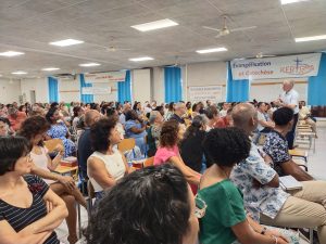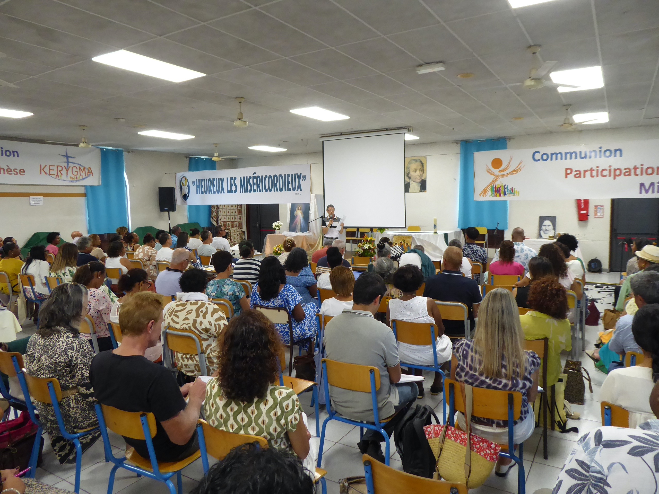 Puis, D. Jacques Fournier et Claude Won Fah Hin ont présenté le parcours de l’année centrée sur le Mystère du Christ, les cinq premières journées étant consacrées à l’étude biblique, les quatre suivantes aux grands textes de la tradition catholique (Concile Vatican II, Catéchisme de l’Eglise Catholique promulgué par St Jean Paul II, etc…).