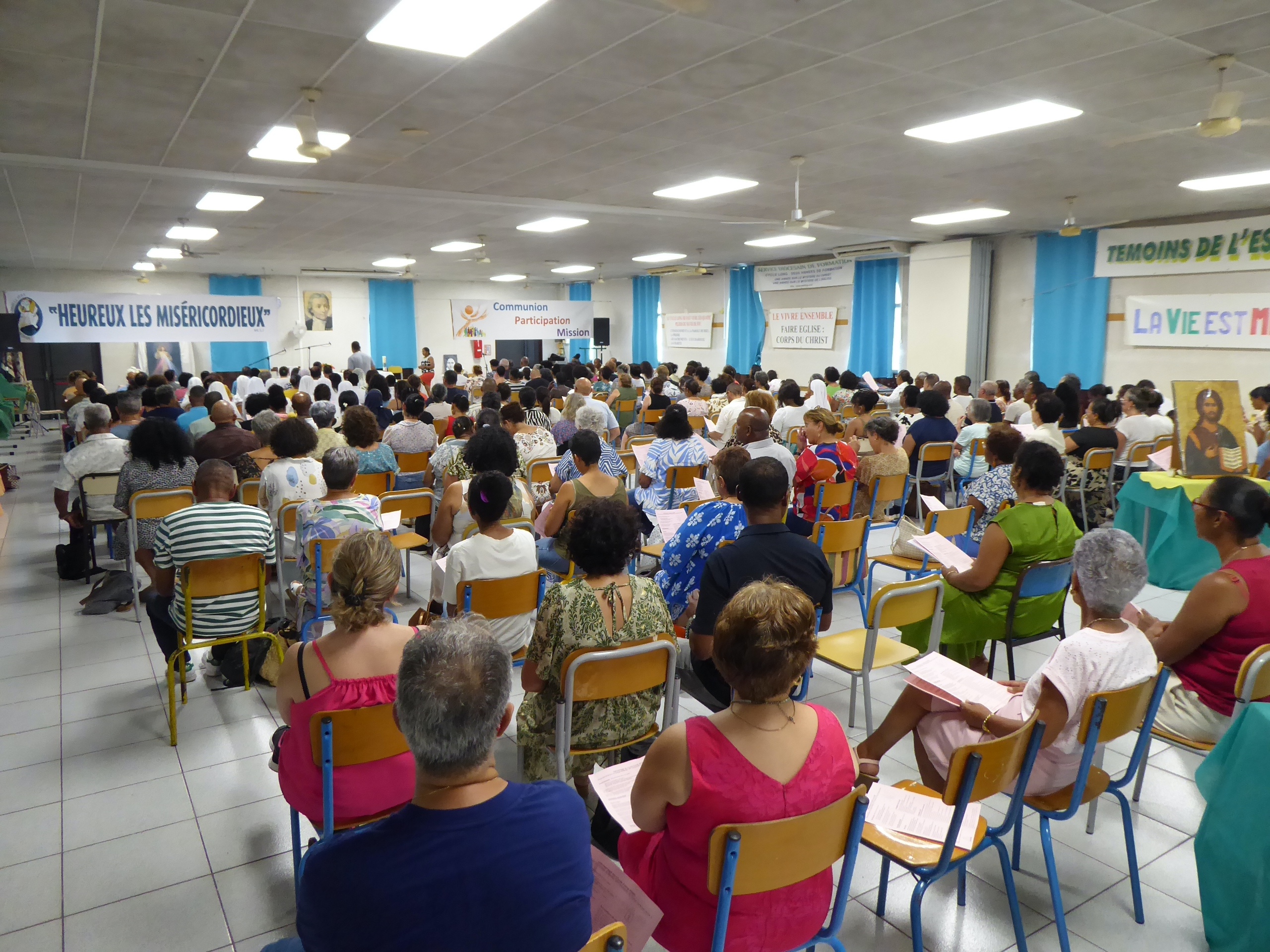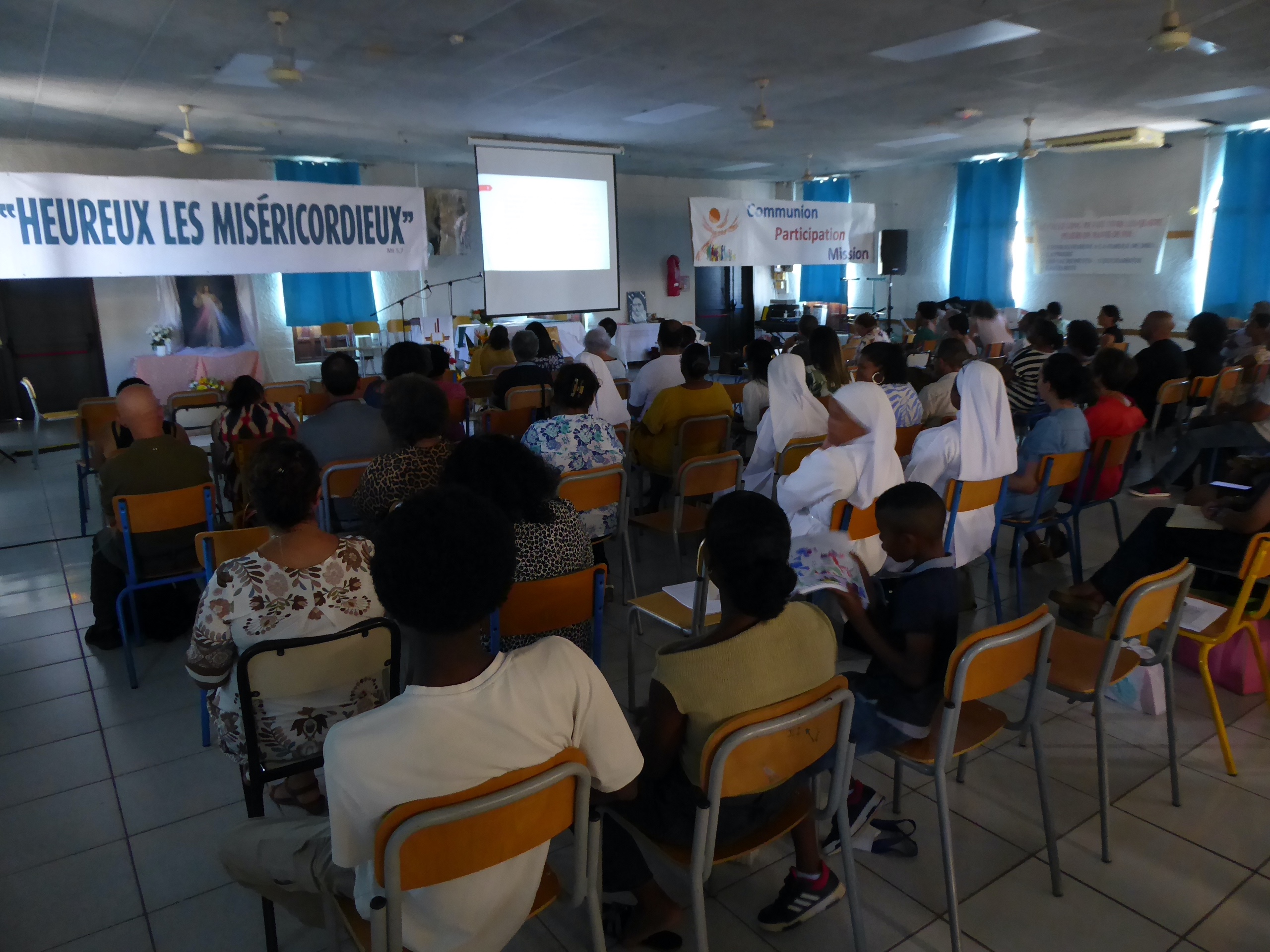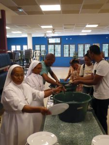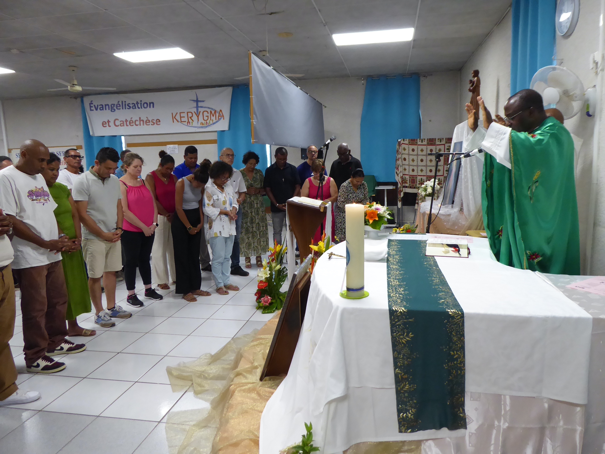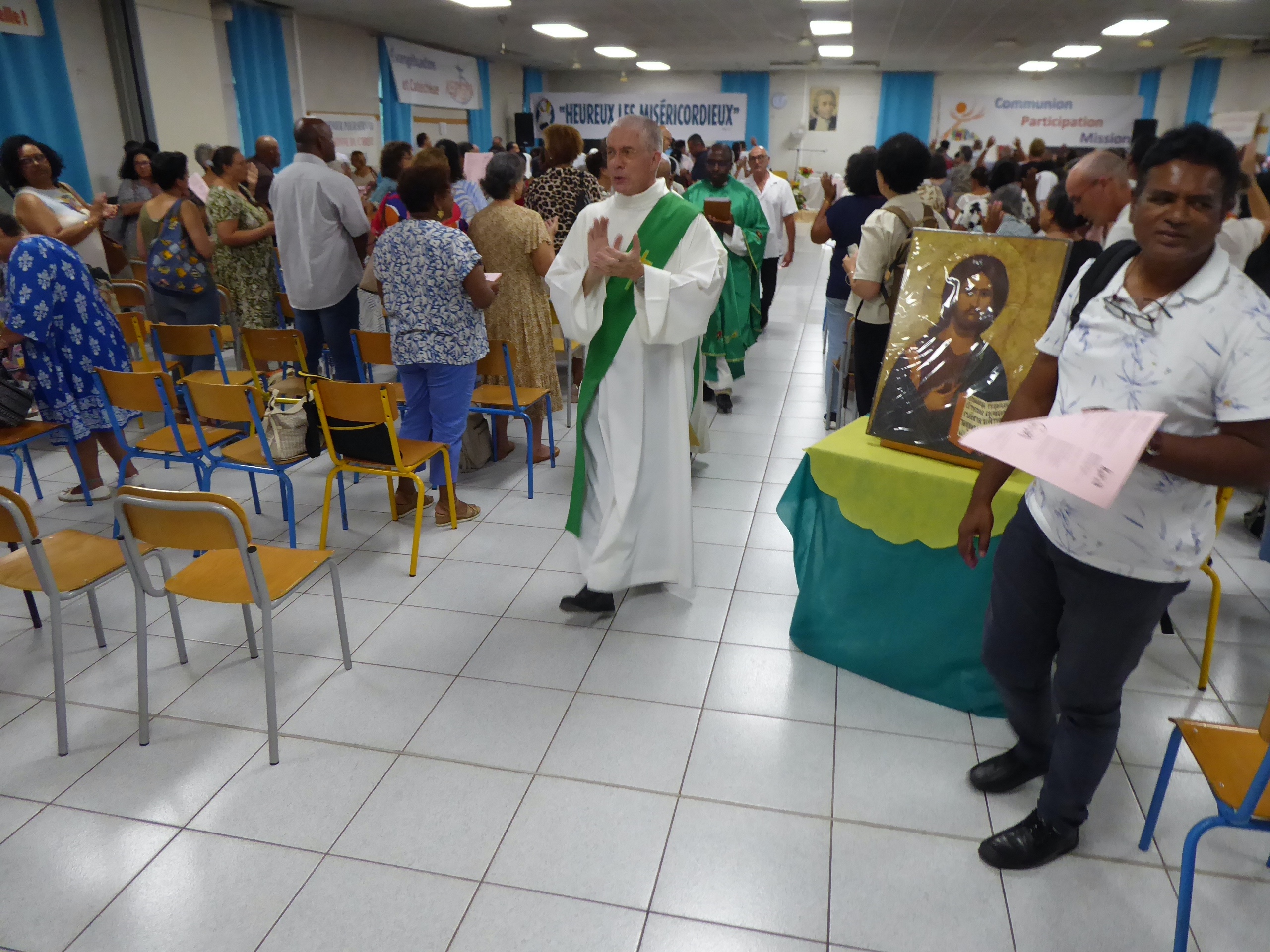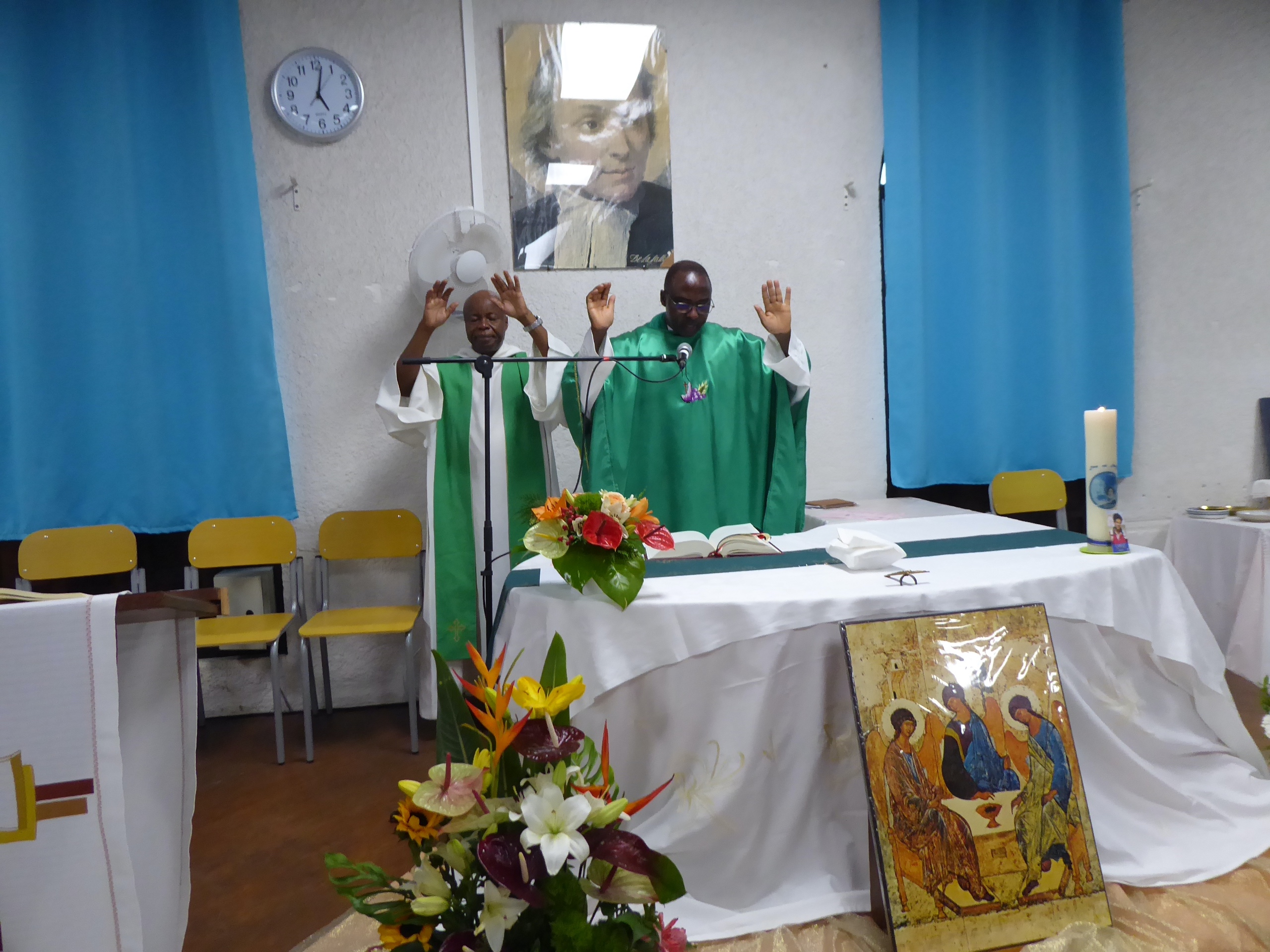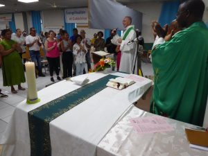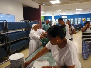 Dimanche matin, l’équipe a commencé à arriver à 6h 30, et à sept heures, nous étions tous dans la chapelle du Collège pour prier et demander, pour les uns et pour les autres, l’Esprit de service…