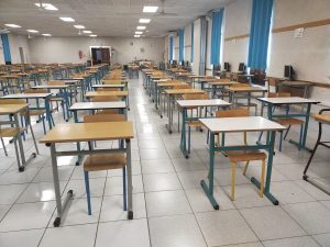 Les secondes années ont ensuite été invitées à descendre s’installer sous un des préaux de la cour du Collège où l’équipe de Service avait installé une centaine de chaise et une sono… Noéline Fournier leur a alors présenté la vie de St Carlo Acutis, pendant que les premières années suivaient dans la grande salle une présentation de la Bible avec l’aide d’un diaporama…